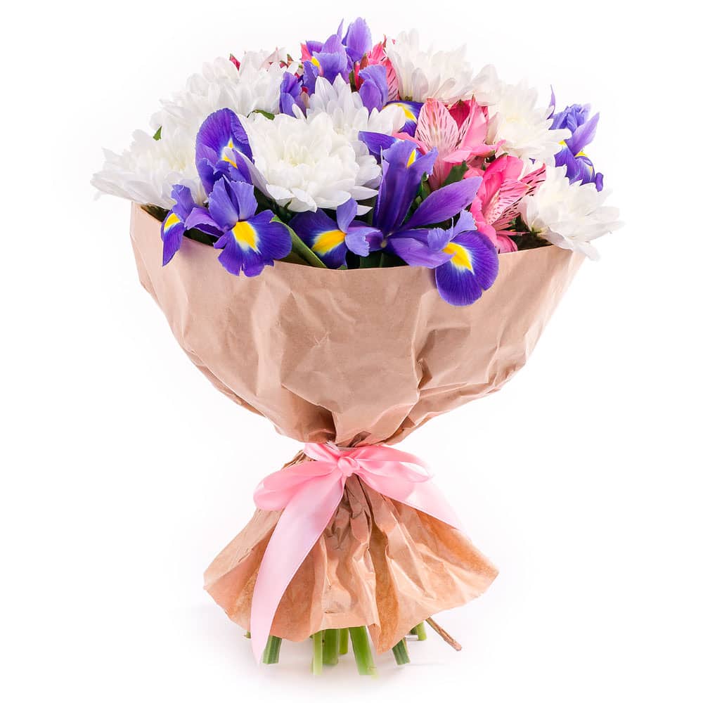 Хризантема, ирис, альстромерия.
